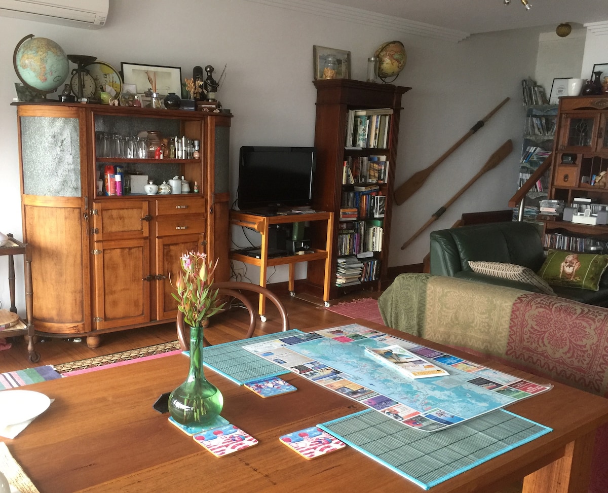 Our peaceful property is a quaint self contained unit which is separate from the main house and has bush views. Please note that we have recently changed our house rules and for safety and suitability reasons we no longer accept bookings with children. We also cannot accommodate pets. Please note that WiFi connection is poor inside the unit but ok on covered deck. No charging of EV permitted but there are two stations in town that we can ferry you too if we are available.