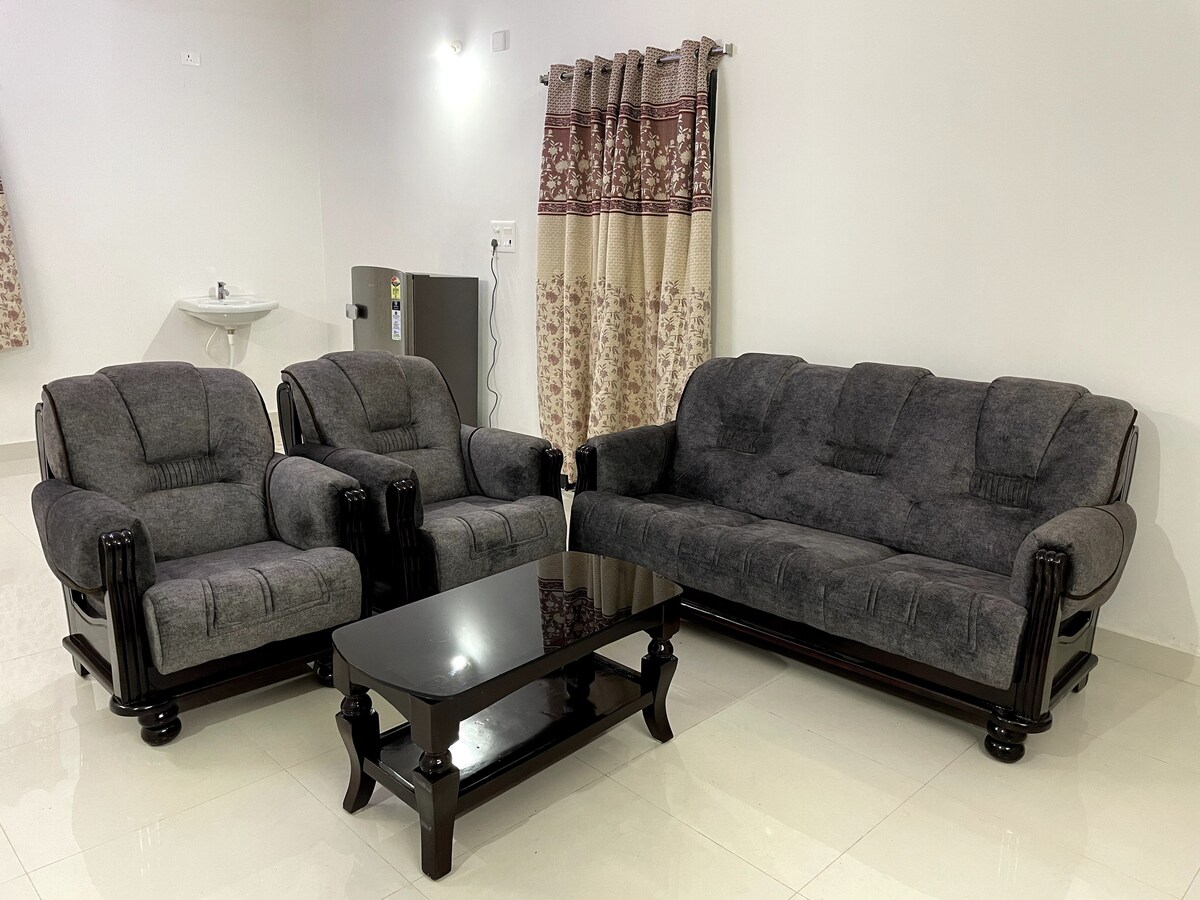 Bring the whole family to this great place with lots of room for fun. A cozy stay at home away from your home. Peaceful and unique place to have gatheings filled with love and laughter. Cook your exceptional recipes and dine with family and friends. Suitable for those who are expecting a homely atmosphere and safety when you are on a tour, official trips, hosting guests for weddings or any other functions. 15km away from Airport. 3km away from Railway station. 3km away from NH@ Bommuru center
