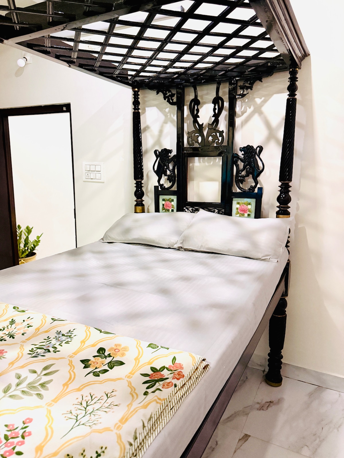 Experience a charming vintage-style 1 BHK designed for comfort and character. The highlight is a beautiful canopy bed that adds a touch of old-world elegance. The bedroom comfortably accommodates two adults, with space for one additional guest in the living room, making it ideal for up to three people. With a private bedroom, living area, and attached bathroom, this stay offers privacy, warmth, and a calm, relaxed ambiance which is perfect for couples, families, or friends seeking a getaway.