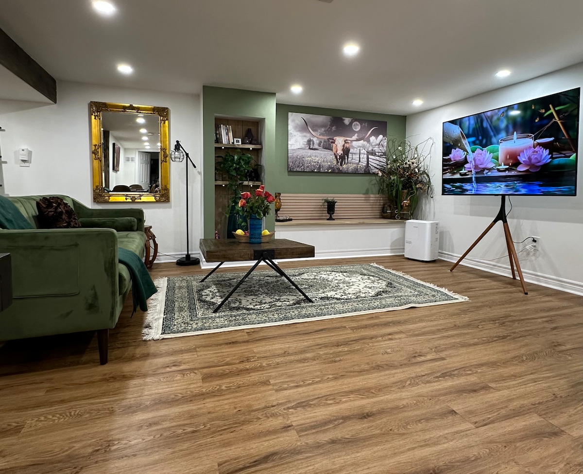 Enjoy easy access to stores, restaurants and entertainment from this perfect location. Only 5 min. drive to GO Train & Bus Terminal with quick, convenient transport to Downtown Toronto, Canada’s Wonderland, etc. This lower level guest suite is fully equipped with own laundry, kitchenette with mini fridge, Induction 2 burner Cook Top Stove, microwave, toaster and coffee maker. Cozy Fireplace, 60” screen HD TV and Luxurious King Size Bed Safe Neighbourhood with walking trails and parks.