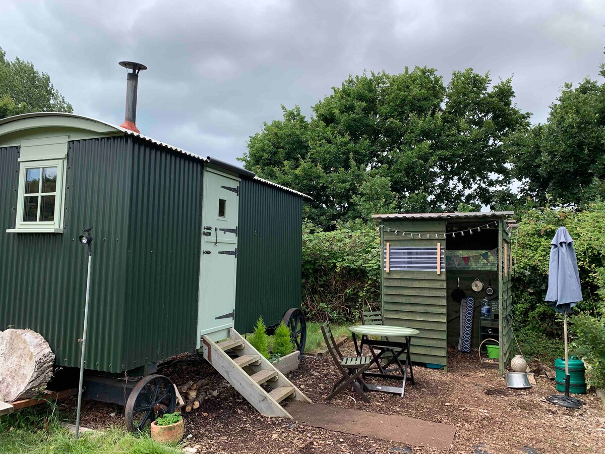 You will be immersed in nature when you stay in this tranquil off grid field setting. This is comfortable camping. The Shepherds hut is set at the top end of our field. It is a secluded area surrounded by blackberry hedges, grass land and some oak trees. Enjoy the outdoors then retreat to a cosy indoor space with a comfortable bed. Includes a basic field kitchen. There is a compost loo close by, plus a mains toilet and electric shower a field walk away, next to the workshop.