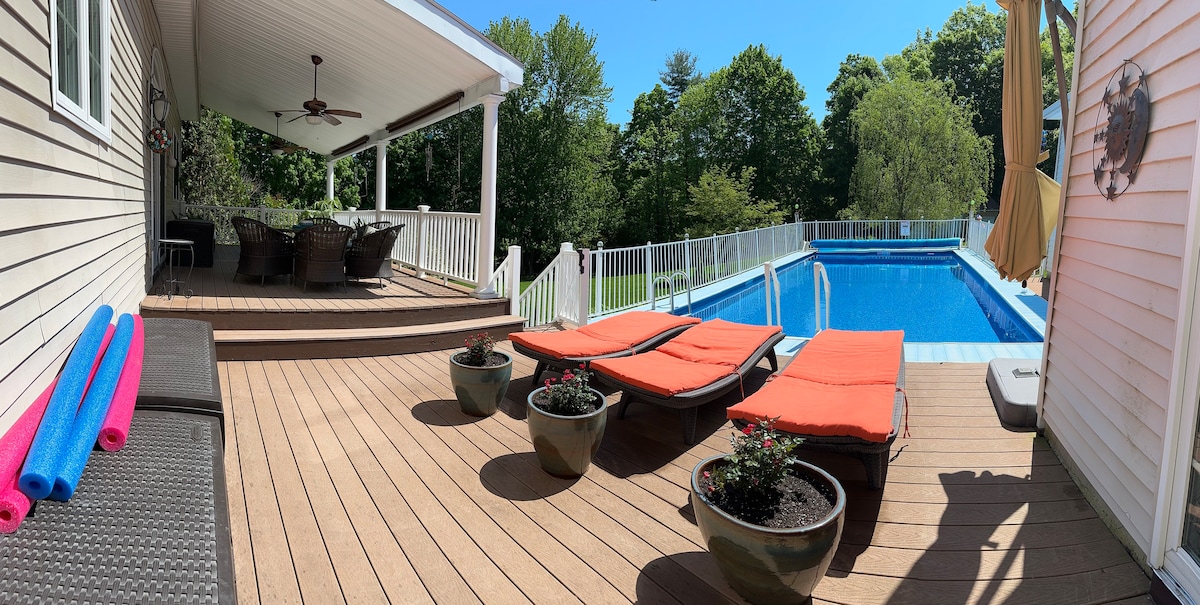 Welcome to our cozy apartment! This fully enclosed apartment is attached to our main house on a beautiful 3.5-acre property in Brookfield. Enjoy a kitchen, comfortable living and bedroom area, and a clean bathroom. Guests have access to a shared 32 ft, 10 ft deep pool, artist studio, pool table,, garden, fire space, and outdoor seating. We provide a guidebook for your convenience. Book now and experience a perfect blend of comfort, creativity, and relaxation.