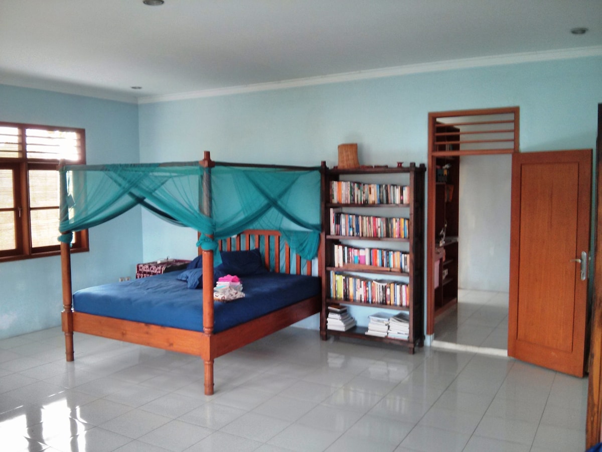 Four-bedroom house and natural swimming pool on a quiet street overlooking the Ciliwung River. From the verandas or the pool you can see lots of wildlife. Rent the whole house or a room. A green oasis in South Jakarta.