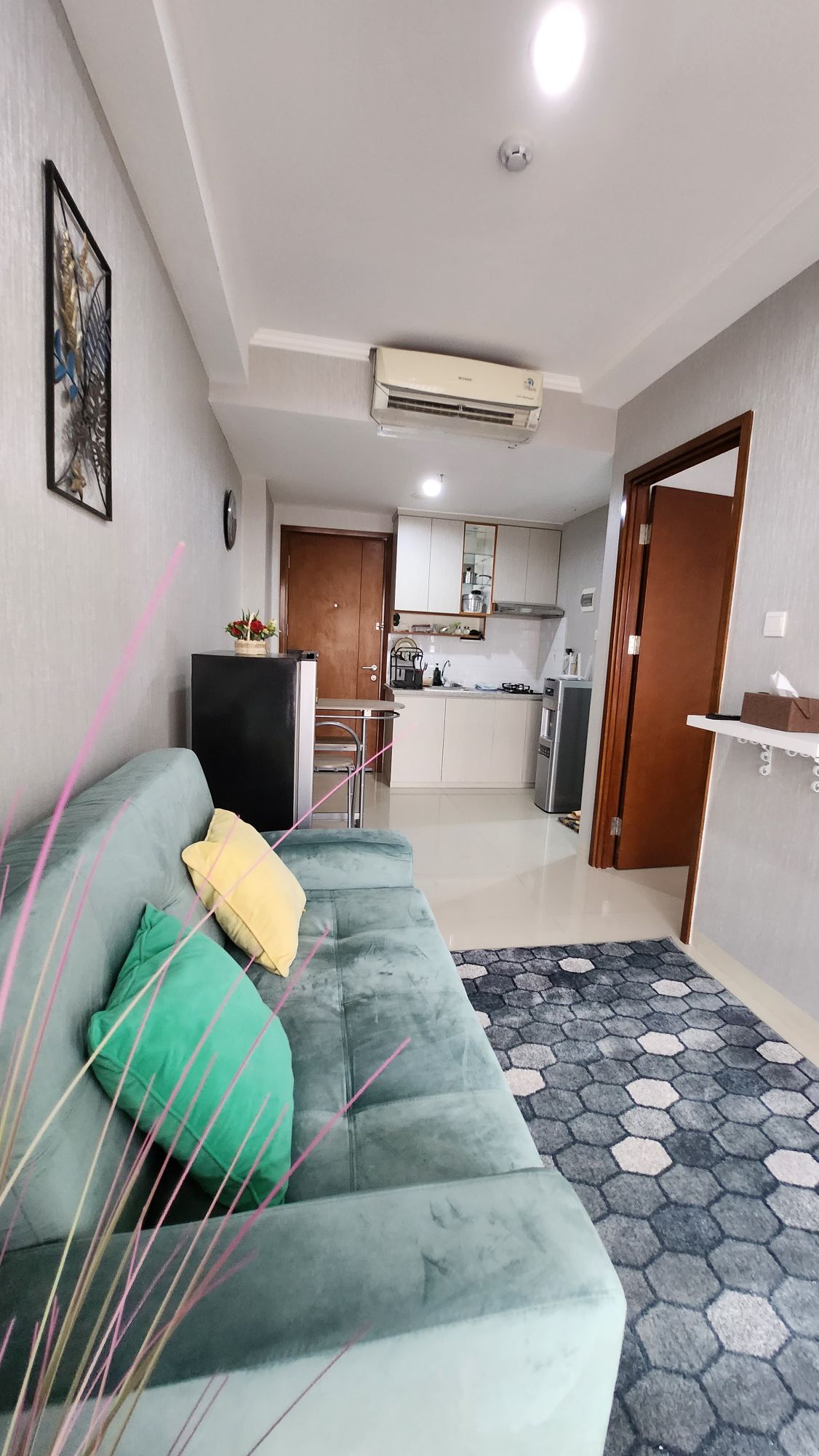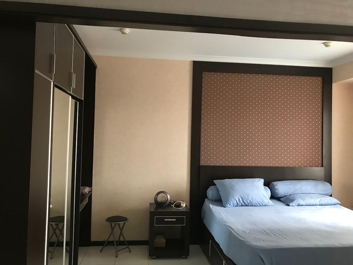 Welcome to our apartment! Located on the 6th floor this beautiful studio room will make your trip to Jakarta the ultimate experience. This apartment is amazing for solo travelers, couples, business travelers, families, and groups Close to Central City (Central Business District, shopping malls, etc) Near LRT Station Your properti : Free WIFI Fully Furnished Air Conditioning TV Cable Refrigerator King sized bed Gas stove Kitchenset Rice Cooker Hair dryer Iron Smoking allowed on balcony