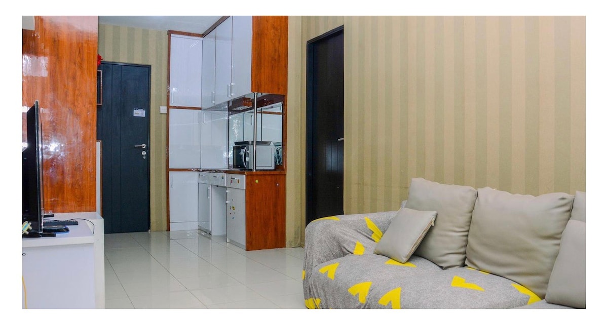Μοντέρνο στούντιο, με έξυπνη και εργονομική διακόσμηση ώστε να αποδώσει τα μέγιστα ο χώρος! Ο χώρος διαθέτει queen size κρεβάτι και μεγαλο καναπέ. Η κουζίνα είναι πλήρως εξοπλισμένη. Το μπάνιο ανακαινισμενο με παροχή ζεστού νερού κσι νιπτήρα. Παρέχεται πρόσβαση σε τρεις πισίνες,μια μεγάλων διαστάσεων για ενήλικες και δύο μικρότερες για παιδιά, του συγκροτήματος. Επίσης υπάρχει ελεύθερη πρόσβαση στο γυμναστήριο και στη σάουνα στο ισόγειο . Το κέντρο της Τζακάρτα απέχει 5-6klm .