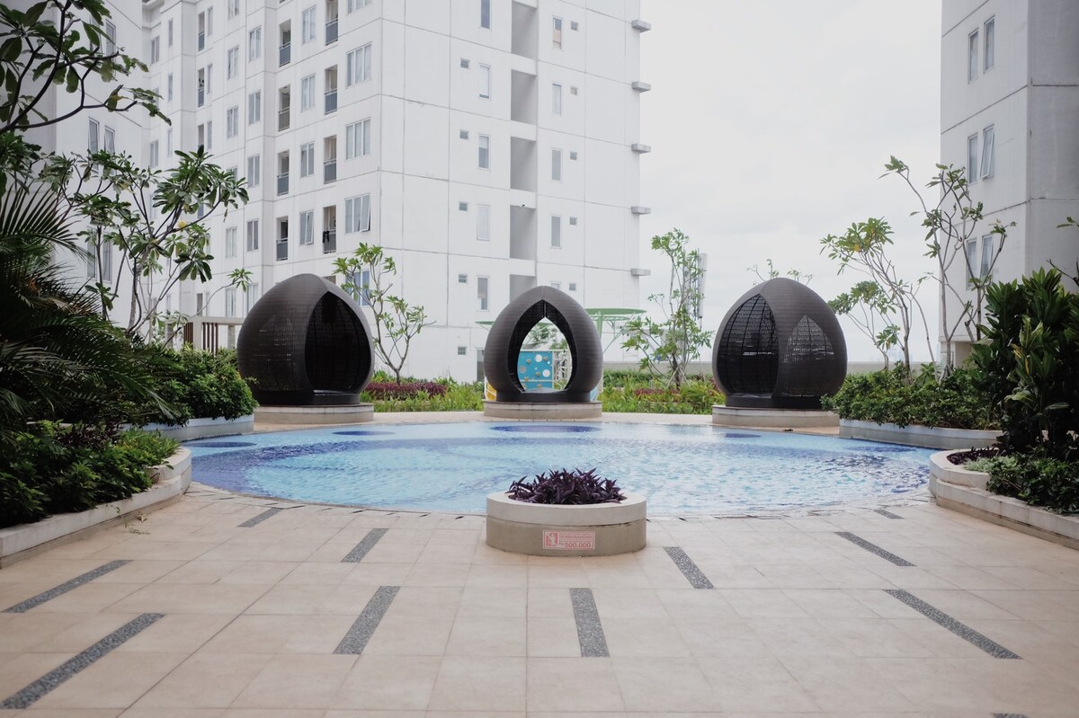This is a spacious, clean studio which can be turned into 1 comfortable bedroom. It has a portable dividing wall. Designed in scandinavian style. This rare-type apartment has an extremely beautiful city light view of Jakarta. Surrounded by restaurants, bar, entertainment and offices, this apartment is very suitable for both professionals and family. The apartment has restaurants, clinic, mini market, gym and swimming pool, qand 24-hour security system for safety. CCTV abailable in each floor