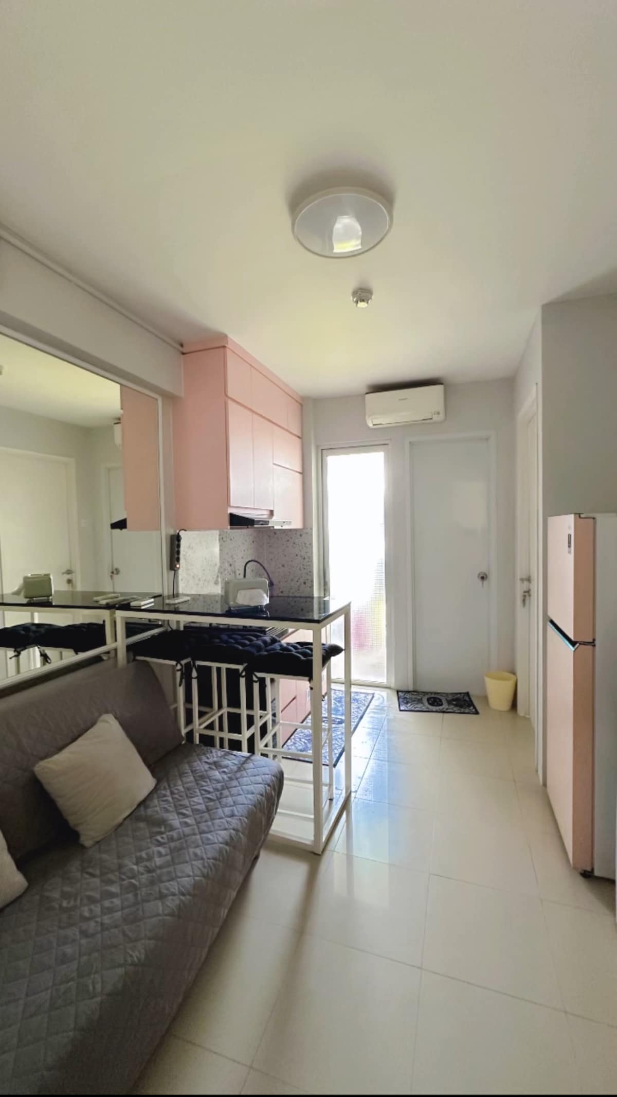 A new and cozy decorated studio flat above shopping mall in the heart of East Jakarta. The location is close to Kuningan and Central Jakarta. The best place to stay with an affordable price! Enjoy our double bed size, smart TV (incl. Netflix) with fast wifi, hot water shower, well equipped kitchen and 24/7 security. Our studio close to Banks, restaurants, laundry, supermarkets and also cinema. You will also have an accsess to swimming pool, gym and basketball court.