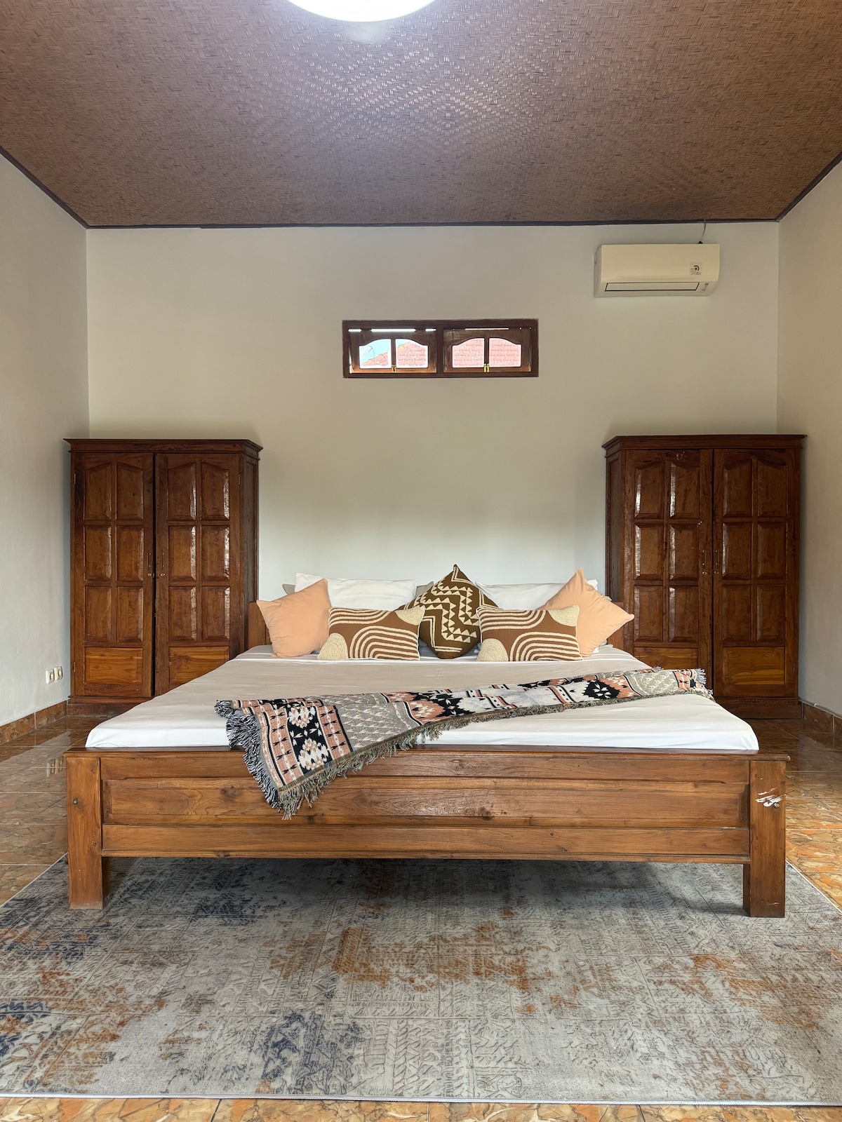 KUBU BIDADARI VILLA is a holiday property with Tourism License. We have very spacious & stylish 5 BR villa (en-suite bathroom) inside the complex. Completed with swimming pool and kitchen. Located on Jalan Pantai Pererenan, Canggu. Restaurants, Shops, Supermarket, Minimarts, Cafes, Beach are very close by and walking distance. Our Rate is for One bedroom. (Incl. Tax/service). Each room has own TV cable & WiFi. AP pick-up service at additional cost.