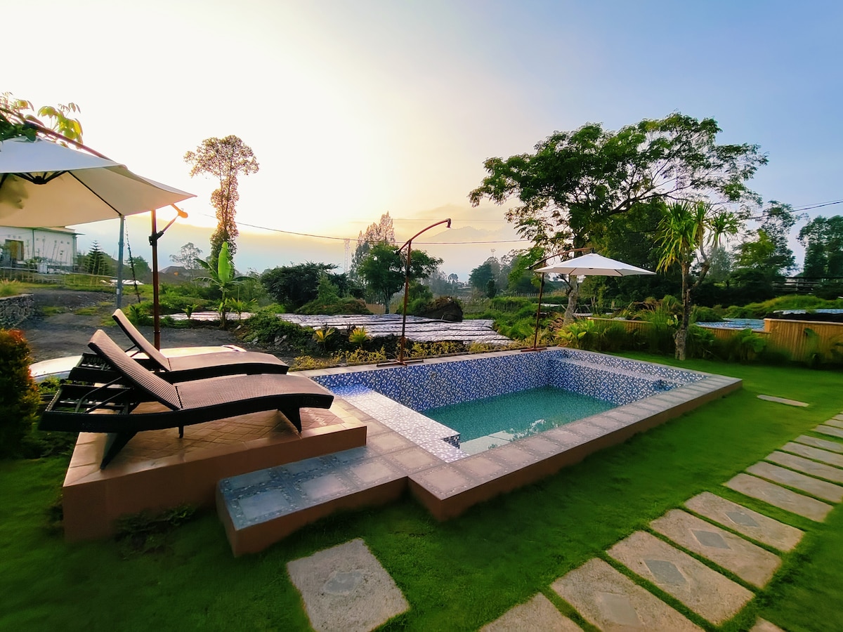 20% discount for October!! Munduk Mountain Estate is a full-staff private family-friendly estate spread over 6000m2 in the remote highlands of Bali, Munduk village. It offers sweeping views of the colorful blooming surrounding landscape with 4 noteworthy pyramid mountains close by, the majestic volcanos of Java, and the ocean on the horizon. Property features: - 4 bedrooms - Media room - Living room - Dining table - Full kitchen - Private pool with an outdoor hot plunge - Fire pit