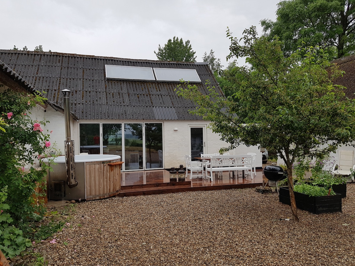 Dejlig ny renoveret staldbygning med synlig bjælker og højt til loftet. Et stor køkken alrum med ovn, stor spisebord,sofa gruppe, fodboldbord og dobbeltseng. Stor hems med 2 enkelt senge. Dejligt nyt badeværeske med brus. Udgang til stor træ terrasse med fantastisk udsigt, her er mulighed for at grille og nyde en tur i vildmarksbadet. Belligende få km. til indkøb og badesø, samt tæt på skov. Kort afstand til Århus og Silkeborg, offentlig transport hertil fra Låsby hver time.
