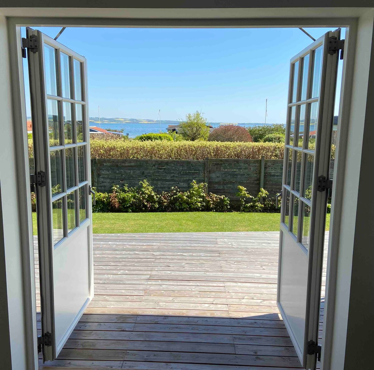 Velkommen til vores hyggelige nybyggede sommerhus med en dejlig udsigt over Kalø Vig. Udsigten kan nydes både ude og inde. Der er kun 100 meter til den børnevenlige sandstrand med bade - og krappebro.