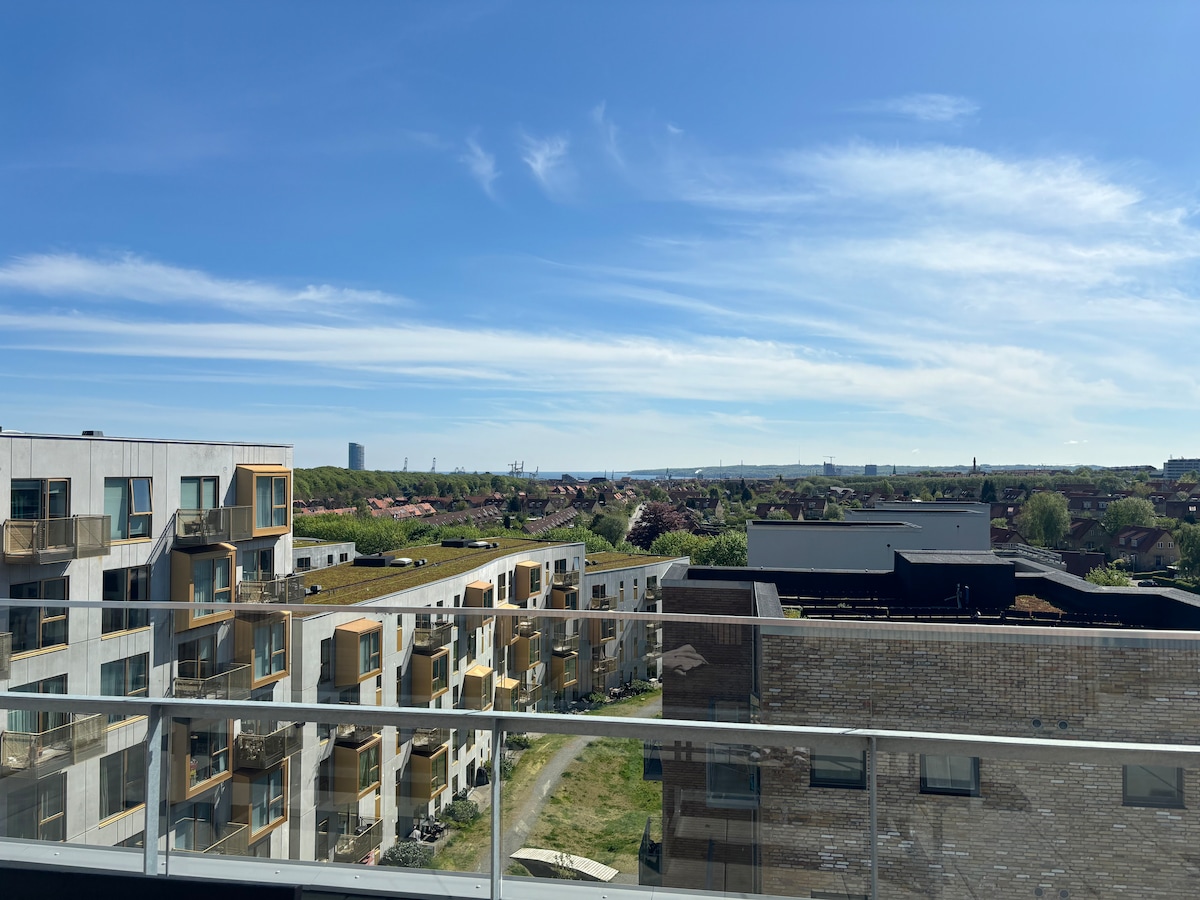Lejlighed på 8. sal med suveræn udsigt samt altan