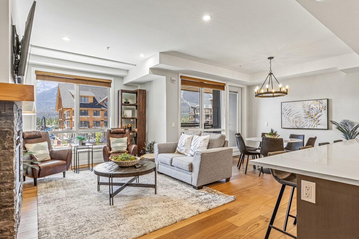 Welcome to your peaceful and stylish Canmore getaway! This luxurious condo is just a 10-minute walk from the town centre, putting shops, restaurants, and trails right at your doorstep. Relax by the cozy stone fireplace, sink into a plush king-sized bed, or host extra guests on the high-quality sofa bed. Enjoy bright, airy living space, fully equipped kitchen, in-suite laundry, complimentary parking, and 1 GB high-speed Wi-Fi. Ideal for adventure or relaxation in the Rockies.