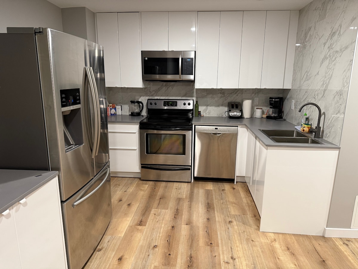 时尚的1卧室,配备低高双人床|厨房浴室洗衣房