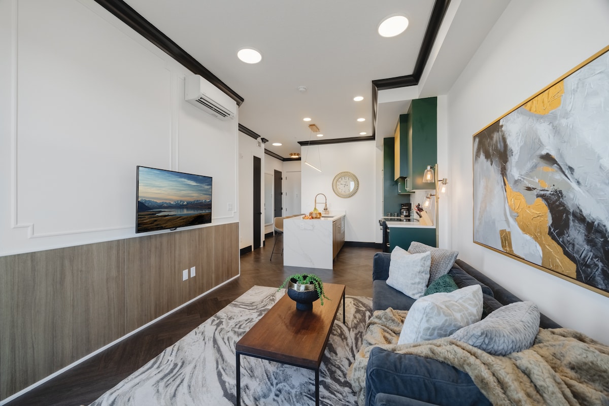 ✨ Luxurious 2BR suite in Calgary’s Beltline ✨ 🛏️ 1 King Bed 🛏️ 1 Queen Bed 🌇 Private balcony with skyline views 🏊 Rooftop pool access 💪 On-site fitness centre 🎨 Velvet furnishings and local artwork 🚶♂️ 7-min walk to Stampede Grounds 🍽️ 5-min walk to 17th Ave dining and nightlife ✅ Fast Wi-Fi ✅ In-suite laundry ✅ Smart TV ✅ Secure building 🚭 Smoking strictly prohibited Perfect for couples, friends, or business stays. Book now & enjoy city vibes + Rocky Mountain access!