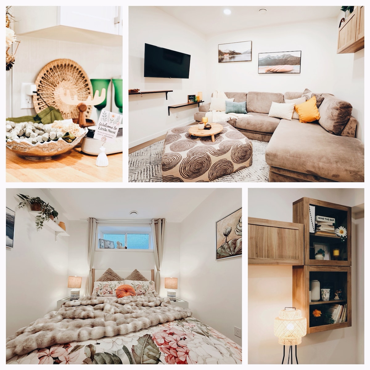 A warm and tastefully furnished basement with a lot of personality. Shops, cinema and restaurants are 6 minutes drive away and the area feels peaceful and secluded. After a busy day, set the ambiance and relax listening to music or watching TV. The kitchenette is well equipped. Soak in the tub, then fall asleep. Please note a family lives upstairs. We also offer Bikes, Kayak & Paddle Board for a fee. Our recreational equipment will help you experience the beauty of the community and the region.