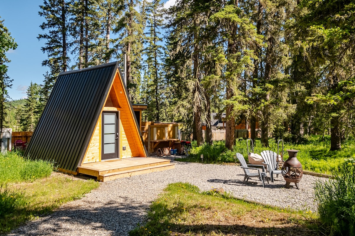 Glamping in Beautiful Bragg Creek, Alberta. Come unplug in our A-Frame on the border of Bragg Creek Provincial Park. 15 minutes from West Bragg, 4 minutes to the Hamlet. Come have a fire indoor or out and let yourself unwind while you camp in comfort. Please note: This space does NOT have a working shower in the winter months and toilet is an incineration toilet (directions on use upon arrival) located in the outhouse mere steps away. In summer months please bring your own towels.