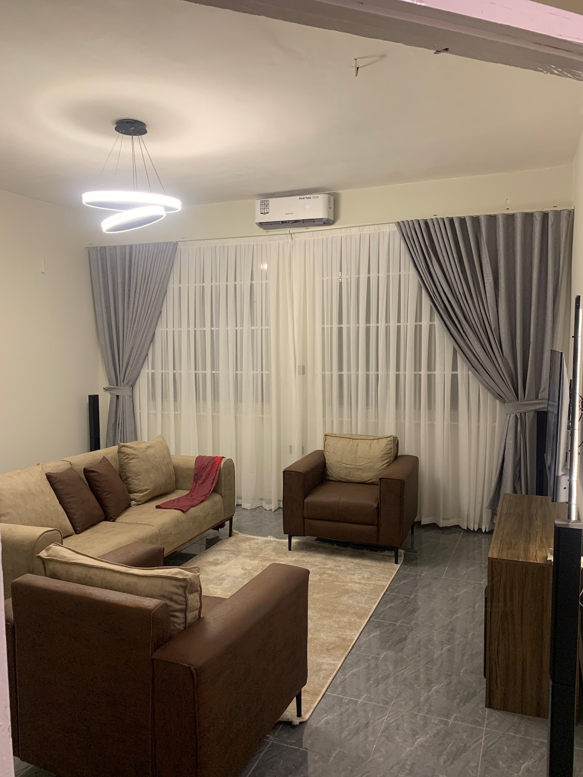 Enjoy a stylish experience at this centrally-located place inside the business and lively neighborhood in Eastlegon. This place is just 15 minutes away from the Kotoka airport, and is surrounded by dozens convenience shops and malls like Melcom, gifted, Hisense ,forex bureau and above all its close to the banking center on the legos avenue. Comes with : WiFi’, Netflix,.washing machine ,fully fitted kitchen, water heater & a double sized bed enough for 2 people comfortably & it’s very central .