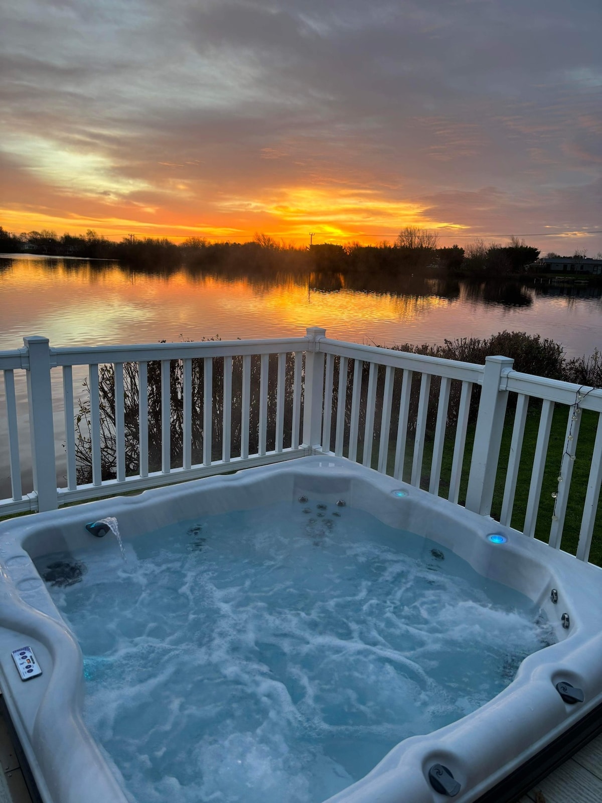 带私人热水浴缸的湖畔度假屋