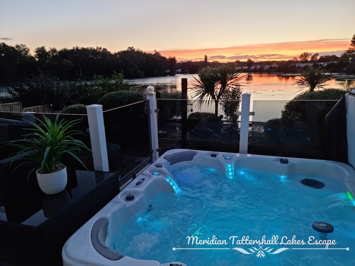 The Lake House at Tattershall Lakes. Our 1000sqft 3 bedroom (2 kings and a twin with full size singles) 2 bathroom lakeside log cabin has 15 meters of private lake frontage with private jetty and lakefront hot tub under a roofed gazebo. Our large fully fenced garden has it's own boules court, dining furniture and sun loungers. We also have a large private parking area. If you love Tattershall Lakes and want spacious premium accommodation and privacy then our place is ideal for you.