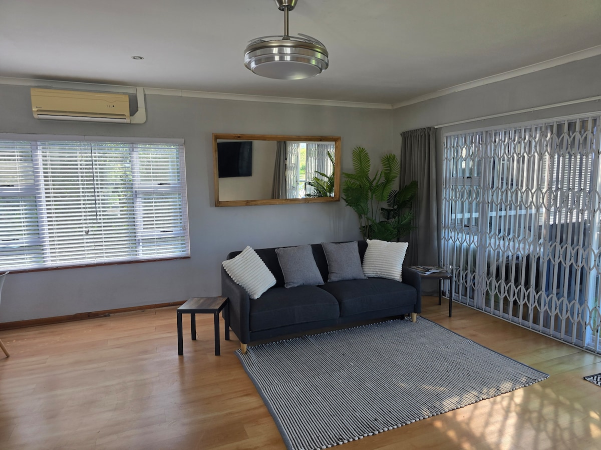 Private one bedroom air conditioned garden flat. A perfect hide away with all the essential appliances such as Weber Braai, Nespresso compatible coffee maker, air fryer and washing machine. Comfortable linen. Located in a peaceful suburb only 2,5km from Hemingways Mall and Abbotsford Village restaurants and supermarkets. Garaging for medium sized car on premises. Our guests return again and again.