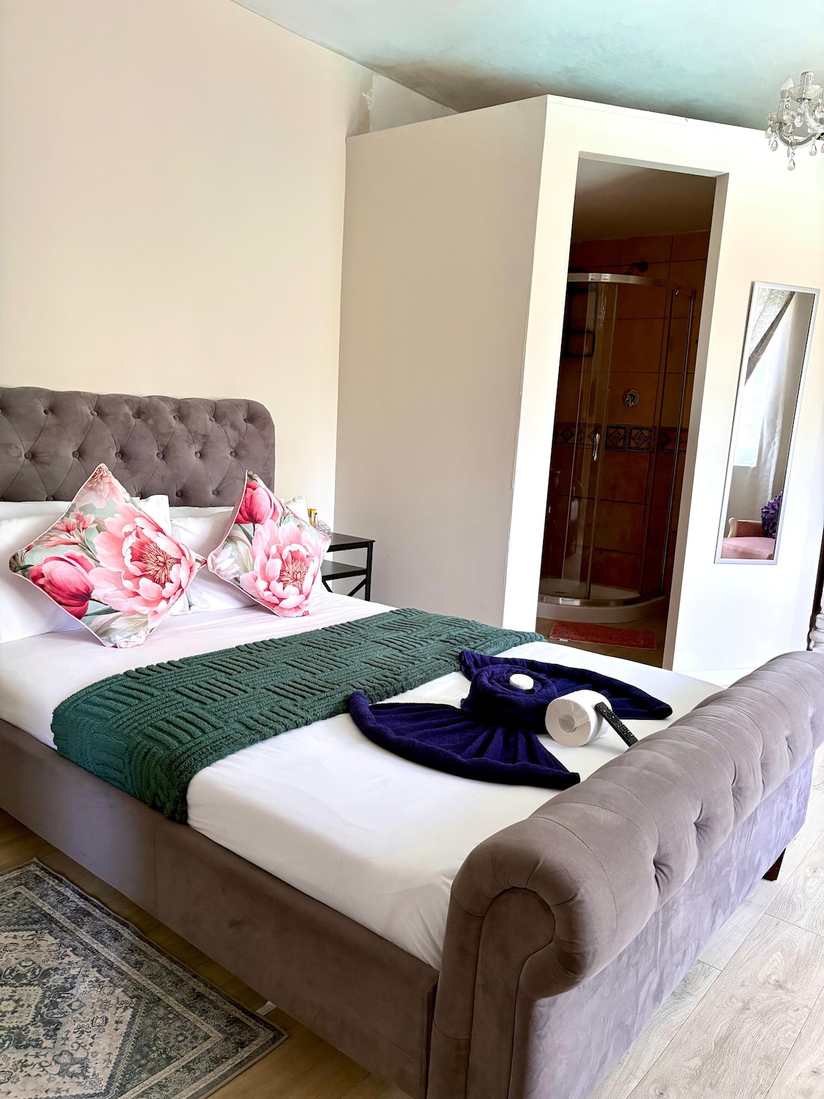 Escape to a serene oasis! Charming 1-BR garden flat in Dorchester Heights. Private entrance & parking for 2 cars. Relax in the large garden with BBQ grill & outdoor table. Enjoy DSTV, Netflix, WiFi & emergency lights. 2km to Hemingways Casino & Mall. Pet-friendly (on request). Self-check-in. Hosts nearby but respect your privacy. Perfect for 2 guests. Book now!
