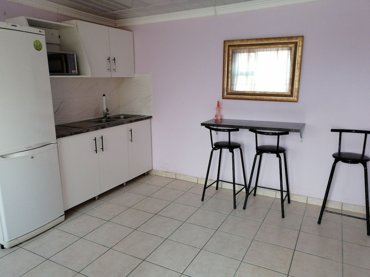Semi self-catering apartment, private entrance and secure off-street parking Access by way of staircase No smoking Close to restaurants, coffee shops, pharmacy, SPAR, beach, schools and sporting facilities. Living area includes kitchen with fridge, microwave, utensils, TV (only Netflix) and seating area as well as a sleeping area. The sofa converts to a full sized single bed. A braai can be supplied if you would like to braai in the garden. Please bring your own wood or charcoal.
