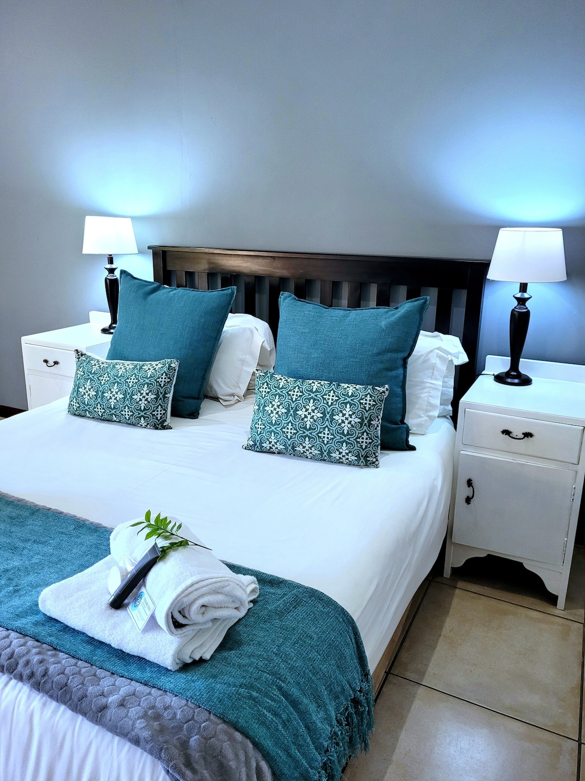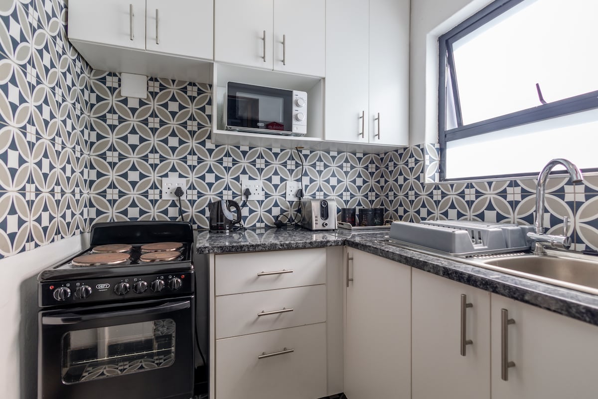 Enjoy the comfort of this modern, upmarket self-catering unit—spotlessly clean, secure, and elegantly finished. Ideal for up to 5 adults or a couple with children, it offers privacy and space in a peaceful, exclusive setting. The unit includes a queen bed with en-suite bathroom and two single beds, making it perfect for a small family or group. A stylish and convenient base for both relaxation and travel.