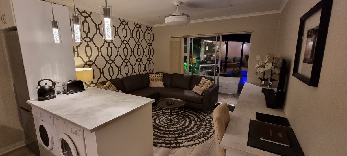 Absolut Comfort is a luxury self catering unit nestled in a quiet cul-de-sac close to two of East London's largest shopping malls . Kick back and relax in this calm, stylish space, equipped with everything you may need from A to Z. From sundowners and braais under the thatched lapa around the pool, to catching up with a full bouquet of DSTV, Netflix and YouTube on a large screen smart TV and a quality sound bar. High speed fibre internet for work and streaming, zero load shedding with full solar