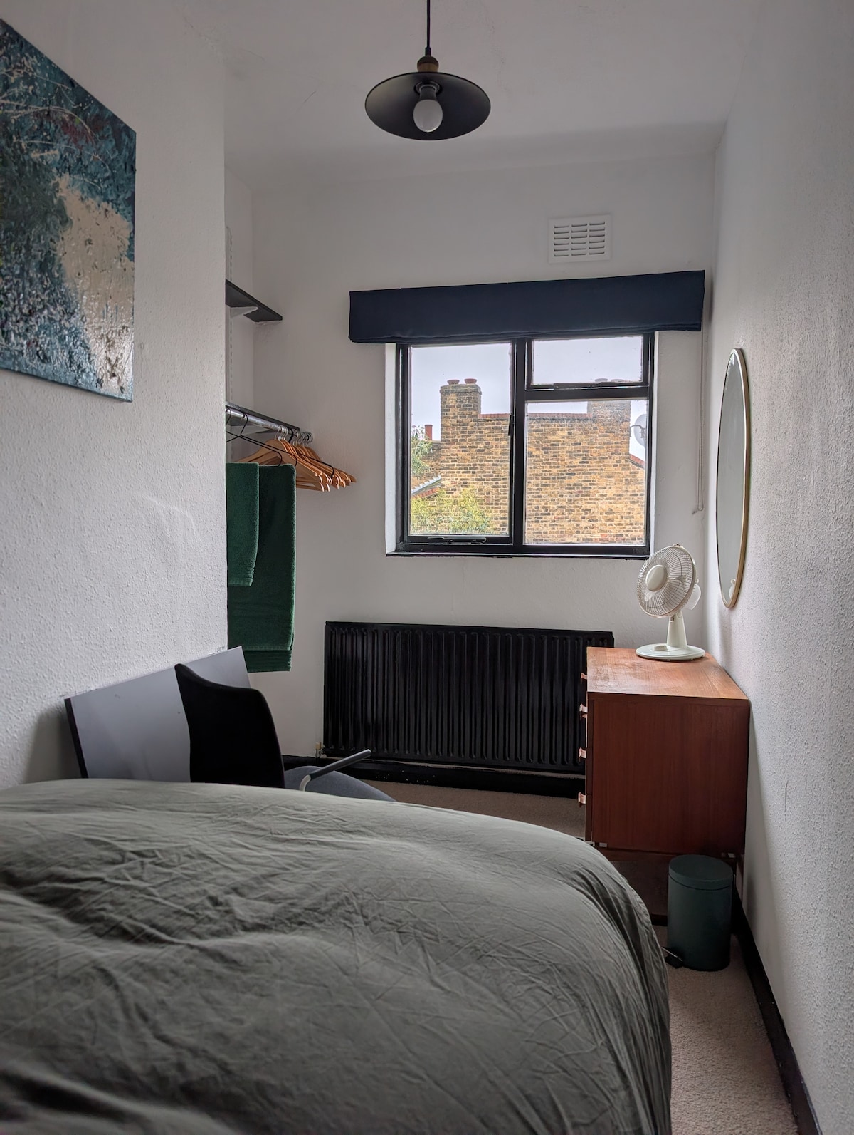 On the top floor of a beautiful Victorian mansion block, amidst the trendy restaurants & bars of Dalston - tucked away on a side street, full of natural light and plants this is a great base to explore from + a place to retreat to and relax!! The self contained lounge transforms into a comfortable second bedroom with a double futon bed (with a deep, comfortable mattress). Or pull down the black out blinds and charge up the projector to make a great cinema room! 1 or 4 people, its a fab!
