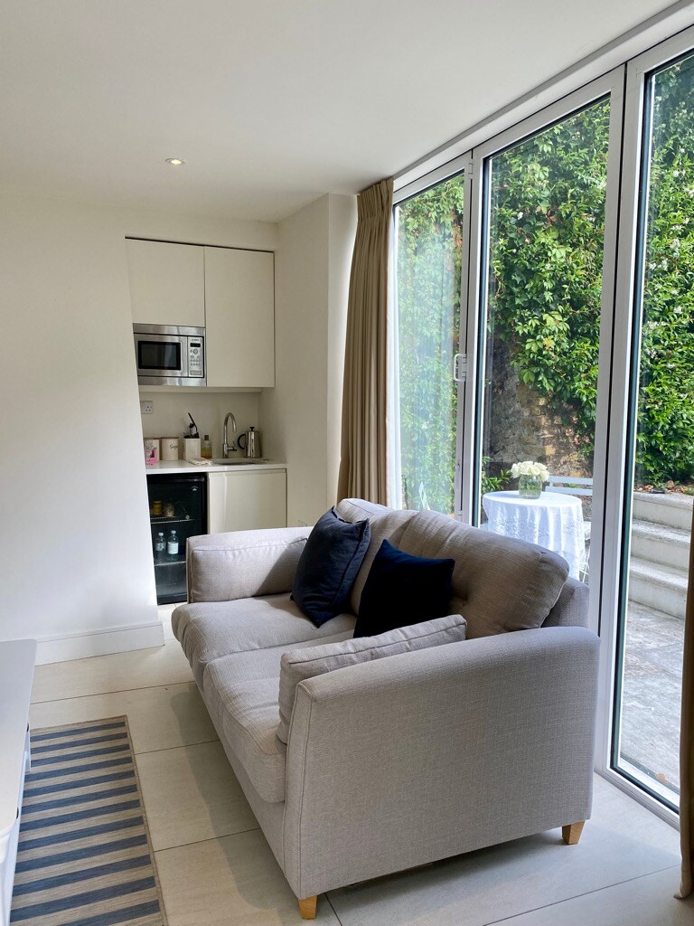 A beautiful self-contained garden studio, located in the heart of historic Highgate Village. The 320 sq foot studio is equipped with King size bed, kitchenette, Bathroom with spacious shower, 55” HDTV, BBC iPlayer, Amazon & Netflix. There is a semi-private outside patio with seating. The village has ten pubs/restaurants within a few minutes walking distance, along with the beautiful expansive Hampstead Heath and Highgate Cemetery. With excellent bus and tube transport connections close by.