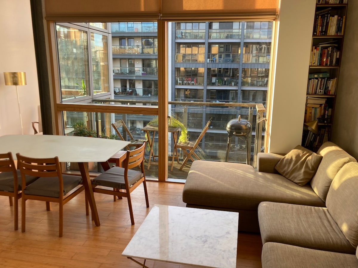 Currently no access to balcony ***Apartment serviced by owner’s personal cleaner. In response to the Corona outbreak an extra deep clean takes place after every booking.*** My modern 2 bed apartment with two private balconies next to Haggerston Overground station with easy commuting distance to the City of London and Canary Wharf and Central London. There is an independent bakery, several cafes pharmacy and Tesco Metro all within 100 meters of the property