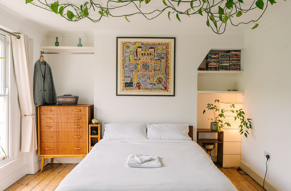 A beautiful, bright and comfortable flat with high ceilings by the canal, meters away from Hackney Wick station, featuring a comfortable and solid double bed and a sofa. The flat is fully equipped with all the necessities and accessories for both short and long stays. 24h check-in smart lock, 24h buses. A minute's walk to Victoria Park, Hackney Woods and Marshes, the Olympic Park, ABBA, V&A E and other Museums. A great choice of bars, restaurants and galleries in the Hackney Wick creative area