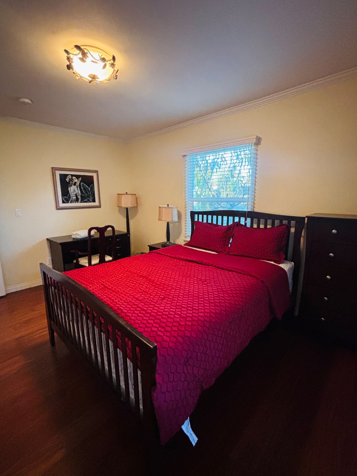 This is a charming fully renovated guesthouse built at the back of our home. We are situated in a peaceful suburban neighborhood. The room has a single bed, private bathroom, own entrance, designated parking space, microwave oven, small refrigerator, coffee maker, 2-burner hot plate, iron/ironing board; heater and air conditioner. There is also a patio you can sit to enjoy the fresh California weather. Please note we request all guests to submit a government ID prior to check in.