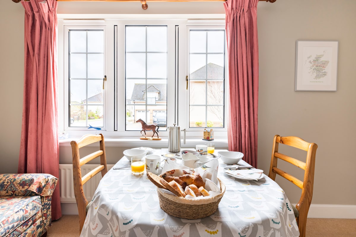 Situated in a quiet cul-de-sac over looking fields in the beautiful coastal town of North Berwick. 10 minutes walk from the town centre, beach, railway station and 50 yards to a bus stop to Edinburgh. Little Morven is a newly refurbished modern 1 bedroom annex with its own private entrance and garden. Newly fitted kitchen, charming south-facing living room and shower room. Private parking. On arrival, enjoy a continental breakfast and homemade baking with your stay.