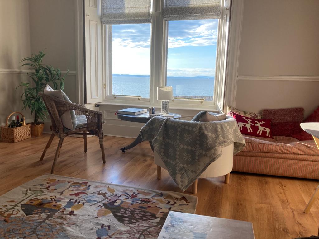 The Puffin Burrow is a lovely self-contained apartment on the ground floor of this magnificent Georgian House. It has 2 double bedrooms, one of which is a twin and the other set up as king size but can be made into another twin on request. The modern bathroom is fully tiled with a bath and shower and there is another separate loo. The open plan modern kitchen and sitting room are complete with wood-burning stove and have views of the sea including the Bass Rock and Craigleith Island.
