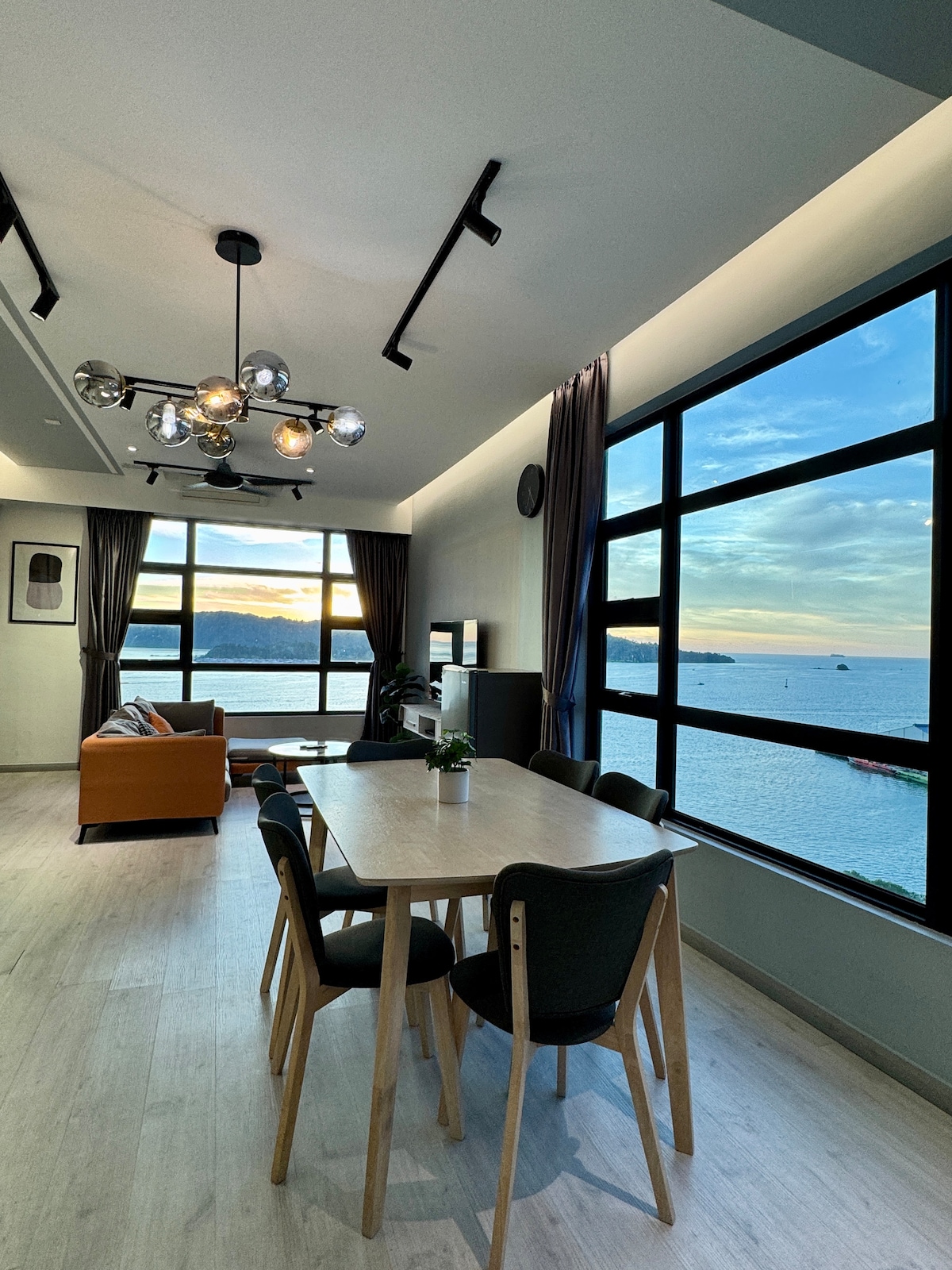 Originally our family vocation home, our place is very spacious (1700 sqft) with modern and cozy renovation consisting of full sea-view overlooking the South China Sea. It has a breath-taking sunset view! We are situated right above the most prestigious Imago shopping mall, at the heart of Kota Kinabalu, just 5-10 mins from the airport. You will have access to an international supermarket and eateries ranging from local flavors to creamy gelatos. It is perfect for families traveling together.