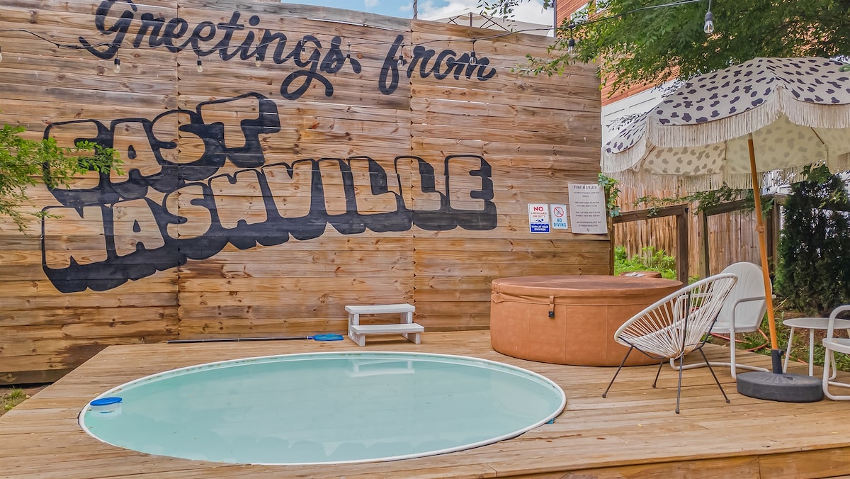 The ULTIMATE place to stay in Nashville complete with brand new Hot Tub & arcade table! ☀Incredible outdoor and indoor spaces perfect to entertain or chill when not out on the town. ☀Free parking, 4 miles from the heart of Music City & walking distance to East Nash’s coolest spots including the recently added SKINNY DENNIS ! ☀10 beds comfortably sleep large groups. ☀Large and well stocked kitchen. ☀Open living room with comfortable seating, electric fireplace & custom mural. ☀3 Bedrooms + Loft