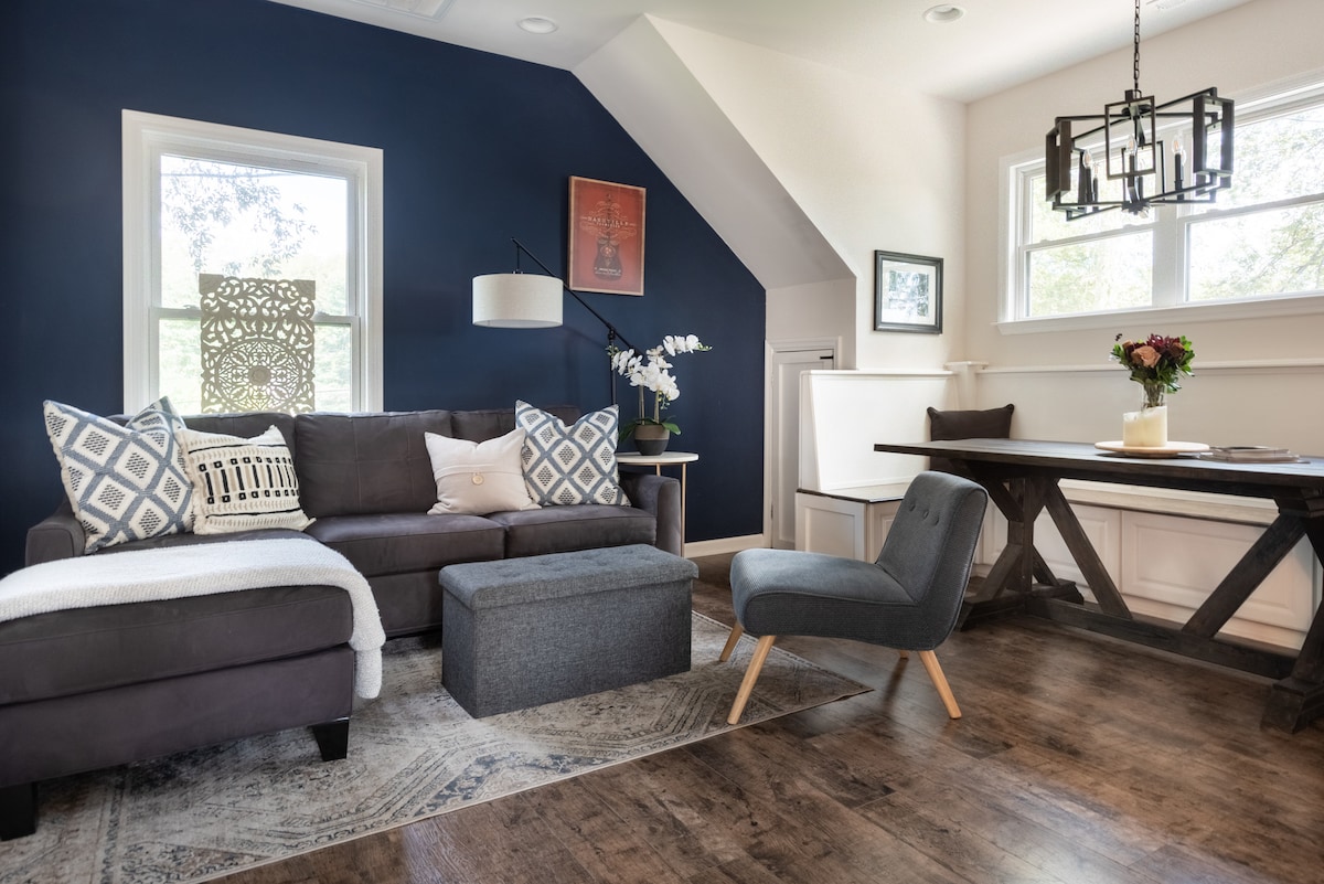 Cook in a full kitchen and dine at a farm table that was made for the space. The feeling is modern chic, where simplicity meets the style of brass faucets, modern lighting fixtures, and beautifully appointed floors. Well lit, the space is very homey, with a full queen sleeper sofa and extra comfortable beds. The open layout makes the loft feel very spacious. Location is everything and we are 5 min from downtown, but tucked in a quiet neighborhood! Short Term Rental Permit #--2016071615