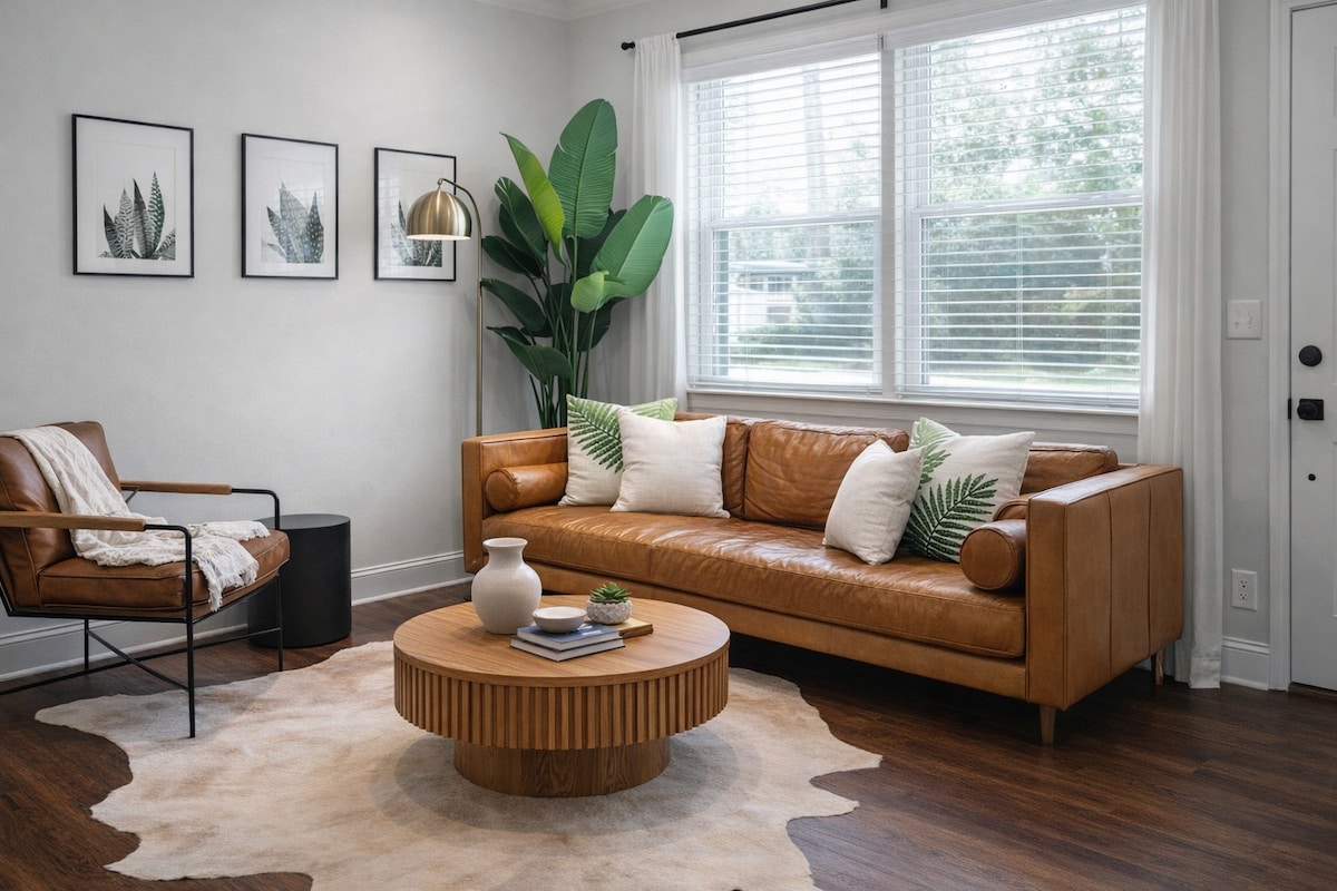 Stylish and cozy, private-entry suite in East Nashville’s Riverside Village. Guests rave about the ultra-comfy king bed, comfortable couch, work area, and the updated bathroom with a walk-in shower. Nestled on a quiet, tree-lined cul-de-sac just minutes from Dose Coffee, Mitchell’s Deli, Lady Bird Tacos, Sho Pizza, Curry Boys Asian BBQ & more. Enjoy a peaceful, walkable retreat just 12 mins from downtown—perfect for couples or solo travelers looking to relax, recharge, and explore.