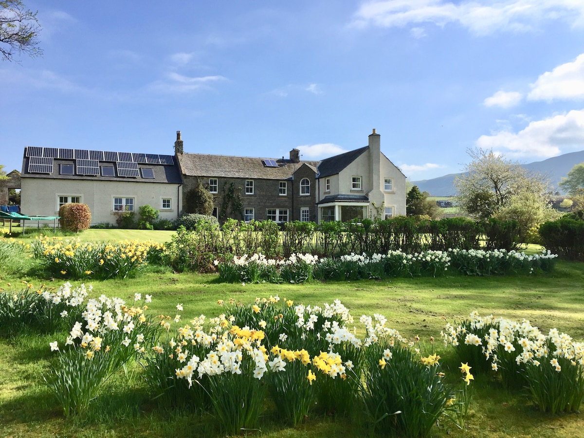 Forget your worries in this spacious and serene space. Located just 3.7 miles from St. Andrews town center, our home enjoys a peaceful semi rural setting, ideal for quiet relaxation and rambles. The stone built house is B listed, dates from 1803 and has a lovely garden with plenty of open space to enjoy the Fife sunshine. This spacious en-suite Red Bedroom overlooks the garden, has 1 king sized bed and sleeps 2. A continental breakfast with home made scones, muffins, breads, granola etc served