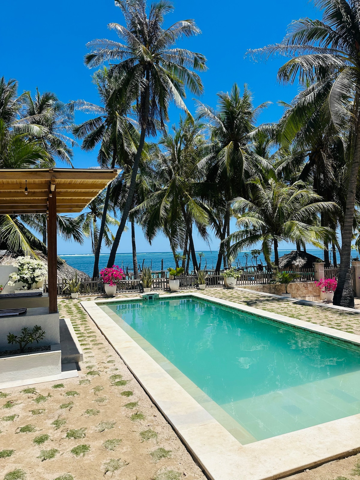 Located on the stunning beach of Lifulada, Tengoin, Rote, set amidst lush coconut trees right on the beach. This idyllic retreat offers direct access to a sheltered bay, perfect for swimming and relaxation, with calm waters protected from seasonal tradewinds, allowing for blissful beach days year-round. It's seamlessly blends two architectural styles: two grand bungalows and two recently completed, modern bedrooms crafted from local stone, providing a contemporary touch. - Soft opening -