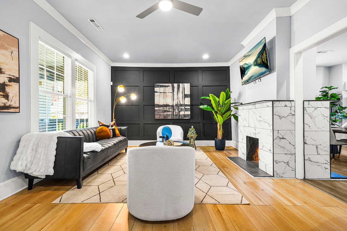 Welcome to KylieCarter Haus - a 2023 new construction in a historic district of West Side Atlanta. Our home gives an fun Atlanta Vibe featuring an Atlanta Skyline Wall for photos, a huge open floor plan w/ 9ft ceiling, a custom built kitchen, and a Japanese jacuzzi. Each bedroom is beautifully designed with a unique accent wall, pendant lights, wall lights, 50 in TVs, and more. Your trip will be memorable when staying at KylieCarter Haus when you’re visiting Atlanta.