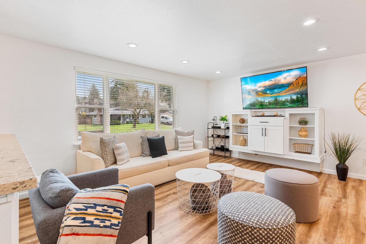 Visiting Seattle, Bellevue, Renton, Boeing for work or family trip? This 2 bedroom and 1 full bath is fully renovated with fresh new appliances and amenities. 3 minutes drive to 405 freeway. 5 minutes to Landing and lots of shops and restaurants! 15 minutes drive to Bellevue, 20 minutes to Seattle. 10 minutes to SeaTac airport. - Smart key. - *Huge* fully fenced 6ft private backyard and cozy deck - Walk to nearby park, library and shops. - Deliveries to your doorsteps - Quiet electric heating