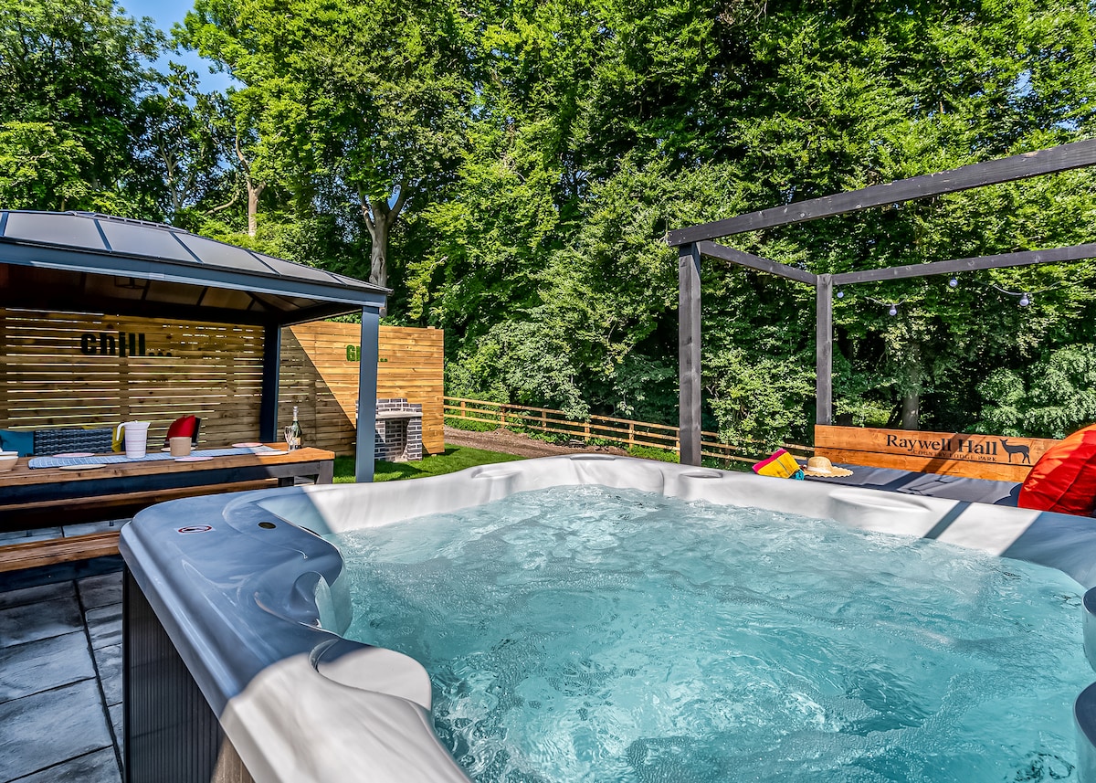 Boutique Lakeview Lodge for Couples with One Dog Welcome to our boutique lodge, designed exclusively for couples and their furry friend (one dog allowed). Enjoy high-quality furniture, fixtures, and fittings, complemented by a stunning lakeside view. The large, pet-friendly deck is perfect for soaking up the sun throughout the day. It features: Deluxe barbecue with free gas Parasol, table, and chairs Comfortable sunbeds Inside the Lodge The open-plan lounge and kitchen area is both stylish and functional, offering: A 42-inch smart TV Digital flame fire Rapid Wi-Fi Dining area with lake views through large patio doors A fully equipped kitchen including a cooker, hob, fridge/freezer, dishwasher, kettle, toaster, and all essential cooking and dining utensils Dine indoors overlooking the serene lake or step outside onto the spacious deck. Bedroom The bedroom is a sanctuary of comfort, featuring: A king-size bed Bedside tables with dimmable lamps A smart TV Wardrobe storage Full-size glass doors with views of the small lake En Suite Bathroom The luxurious en suite bathroom includes: A deluxe walk-in shower Basin with vanity unit Mirror Towel radiator WC Underfloor heating throughout Linen and towels are provided for your convenience. Complimentary Health Spa Access Guests enjoy free access to the adjoining Oaks Golf Club and Spa. Facilities include: Indoor pool Jacuzzi Sauna and steam room Aromatherapy room Relaxing water beds Fully equipped gym Dining/lounge area with a full food and drink menu (eat-in or takeaway) Additional treatments are available at cost; advance booking is recommended. Electric car charging is also available at the golf club. Nearby Attractions York: Discover its rich history with attractions like the National Railway Museum, York Minster, Jorvik Viking Centre, and The Shambles. Don t miss the famous Betty s Tea Room or York Races. Coastal Destinations: Enjoy a day trip to Whitby, Scarborough, Bridlington, Filey, or Flamborough all within an hour s drive. The Yorkshire Dales, Wolds, and Moors: Perfect for exploring scenic countryside and quaint villages. Stately Homes: Visit Castle Howard (of Brideshead Revisited fame), Harewood House, or Sledmere House. Nearby Towns: Harrogate s charming spa town and Beverley s vibrant market town are must-see destinations. House Rules Adults only Check-in: 4 PM | Check-out: 10 AM No smoking Free on-site parking One dog allowed (free of charge; bring your own pet accessories) We look forward to hosting you for a relaxing and memorable stay.