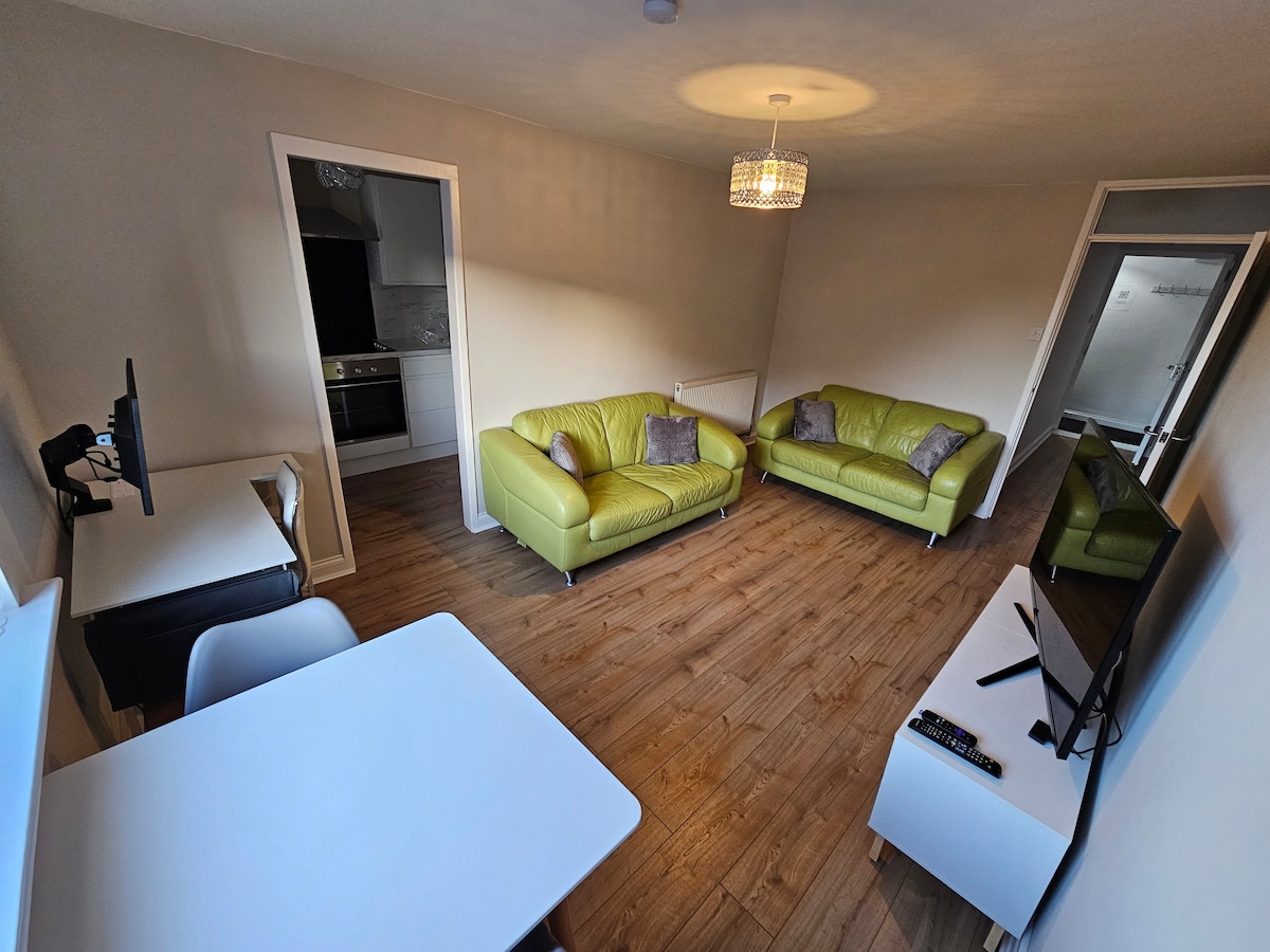 Fabulous newly renovated luxury apartment with central location. The Fully fitted kitchen contains a fridge, freezer, dishwasher, washer dryer, electric oven, induction hob, toaster, microwave & kettle. Living area contains 4 seat dining table, L Shaped sofa, Smart TV. Bed 1 has a Kingsized bed, small wardrobe, full length mirror, double chest of drawers, smart tv and relaxing chair. Bed 2 can either be made up as a king size or 2 single beds, smart tv, dressing table, wardrobe