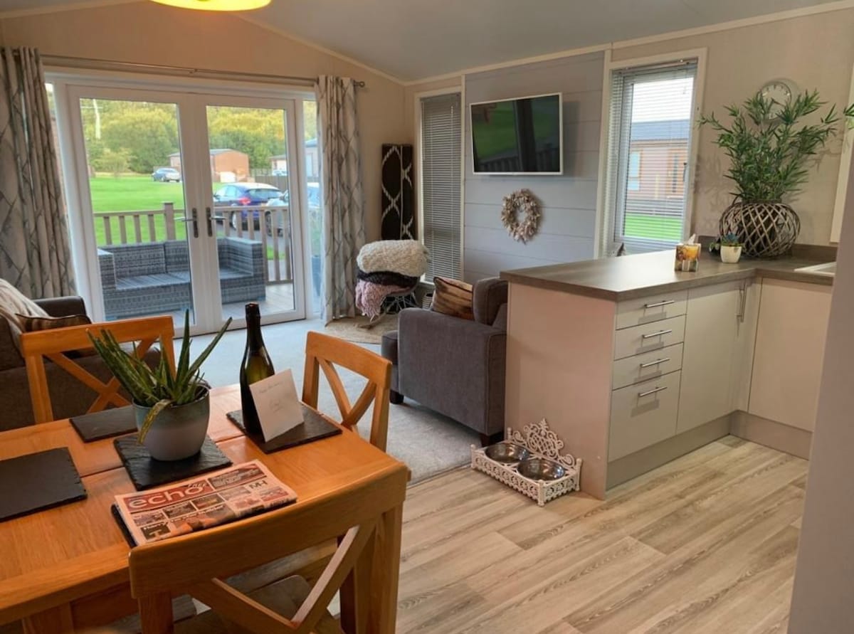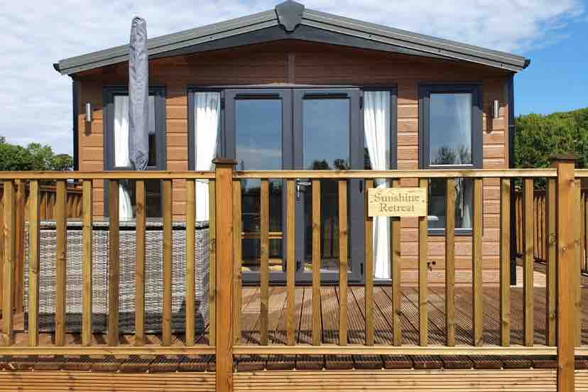 A beautiful, dog friendly lodge-style holiday home with a huge private enclosed garden, safe for children and dogs with a seven seater hot tub. Sleeps up to six people with it’s two bedrooms; one double with a walk in wardrobe and en-suite toilet and sink, and one twin room, plus a pull out sofa bed in the lounge.