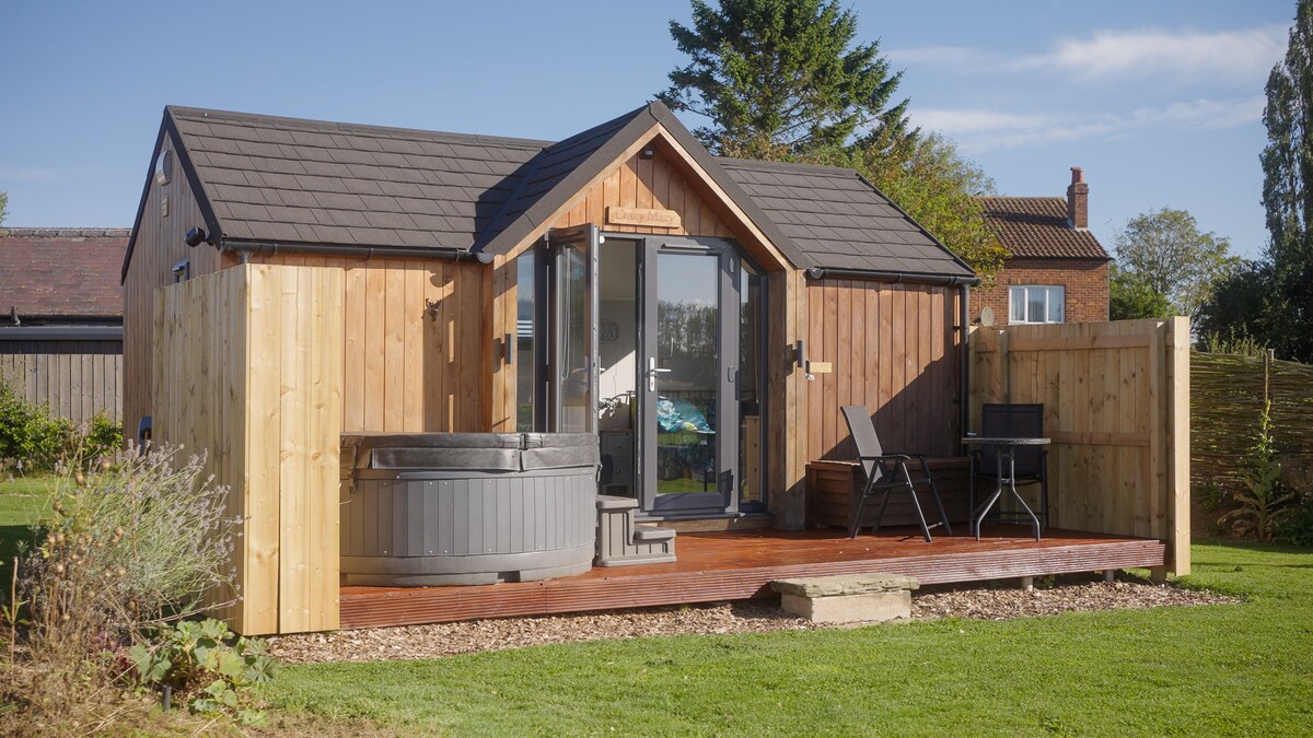 A log cabin for 2 adults (unsuitable for children or infants or pets), in the centre of Beverley in the East Riding of Yorkshire. An 8 metres x4 metres open plan arrangement with well equipped kitchen area, dining table and 2 chairs, double bed in the bedroom area, 2 seater sofa, log burner and separate bathroom. Along with Wi-Fi, and a smart TV for internet access only, you'll have everything you need to enjoy your stay. Outside pergola, patio area and chiminea for the warmer weather.