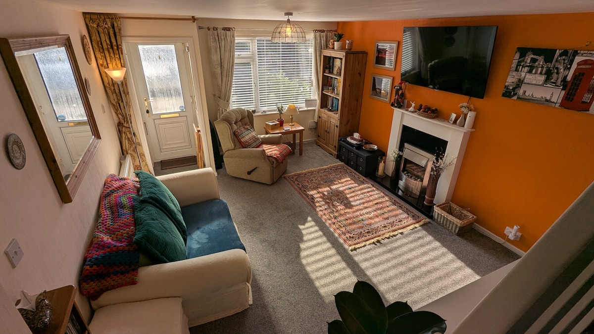 FREE EASY ACCESS PRIVATE PARKING AT REAR OF PROPERTY This property is perfect as it offers both home comforts and hotel style luxuries. Whether it’s a vacation, staycation or business trip, this Airbnb is idea for you. ++LIVING ROOM++ From the front door you will access a bright open plan living room with 2 sofas and a smart TV with free NETFLIX The white 3 seater sofa folds out into a full sofa bed for guests 3 and 4. **please note - if only 2 guests are staying but you require the sofa bed, you MUST advise the host in advance and a sofa bed charge of £10 will be required** ++KITCHEN++ Renovated in March/April 2019, the brand NEW kitchen is stylish and contemporary. Fully equipped, you’ll be able to prepare yourself fresh food and drinks at your own leisure. ++SUN ROOM/DINING ROOM++ A great space for those here on business using laptops and tablets looking for a quiet spot to sit and enjoy your morning coffee whilst getting work done. A lovely spot for guests who wish to dine in and don’t fancy eating on their laps. ++BEDROOM++ Bedroom is located upstairs. KING SIZE bed dress in fresh white linen. The room also features an amazing mezzanine gallery. The room is relaxing, has a double wardrobe and hair dryer. ++GARDEN PATIO++ The garden patio is a great space to enjoy drinks, nibbles and the evening sun. It’s secluded on all sides and leads straight out from the sunroom. ++BATHROOM++ The bathroom is also upstairs. Full sized bath and shower. Towels provided with shampoo and conditioner also. Dogs are welcome - however, pet dogs (those that are not used as guide dogs) MUST message the host in advance and also pay a dog fee of £10 - this will be collected by the host via Airbnb. Please advise the host when booking if you are bringing a dog or guide dog. Long-term enquires see photo 15