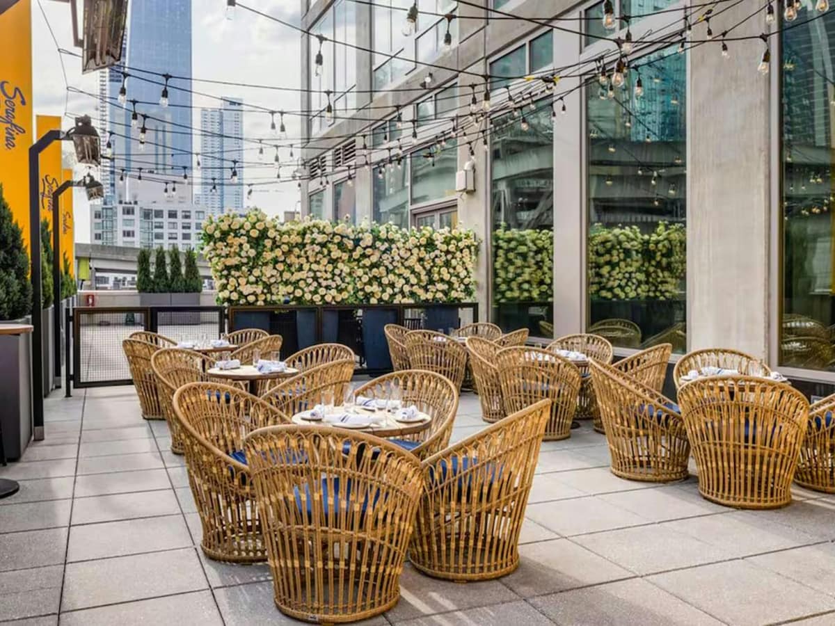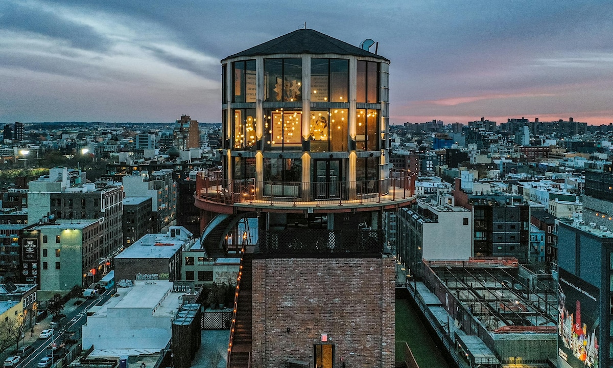 靠近威廉斯堡大桥,带屋顶泳池、酒吧和健身房。